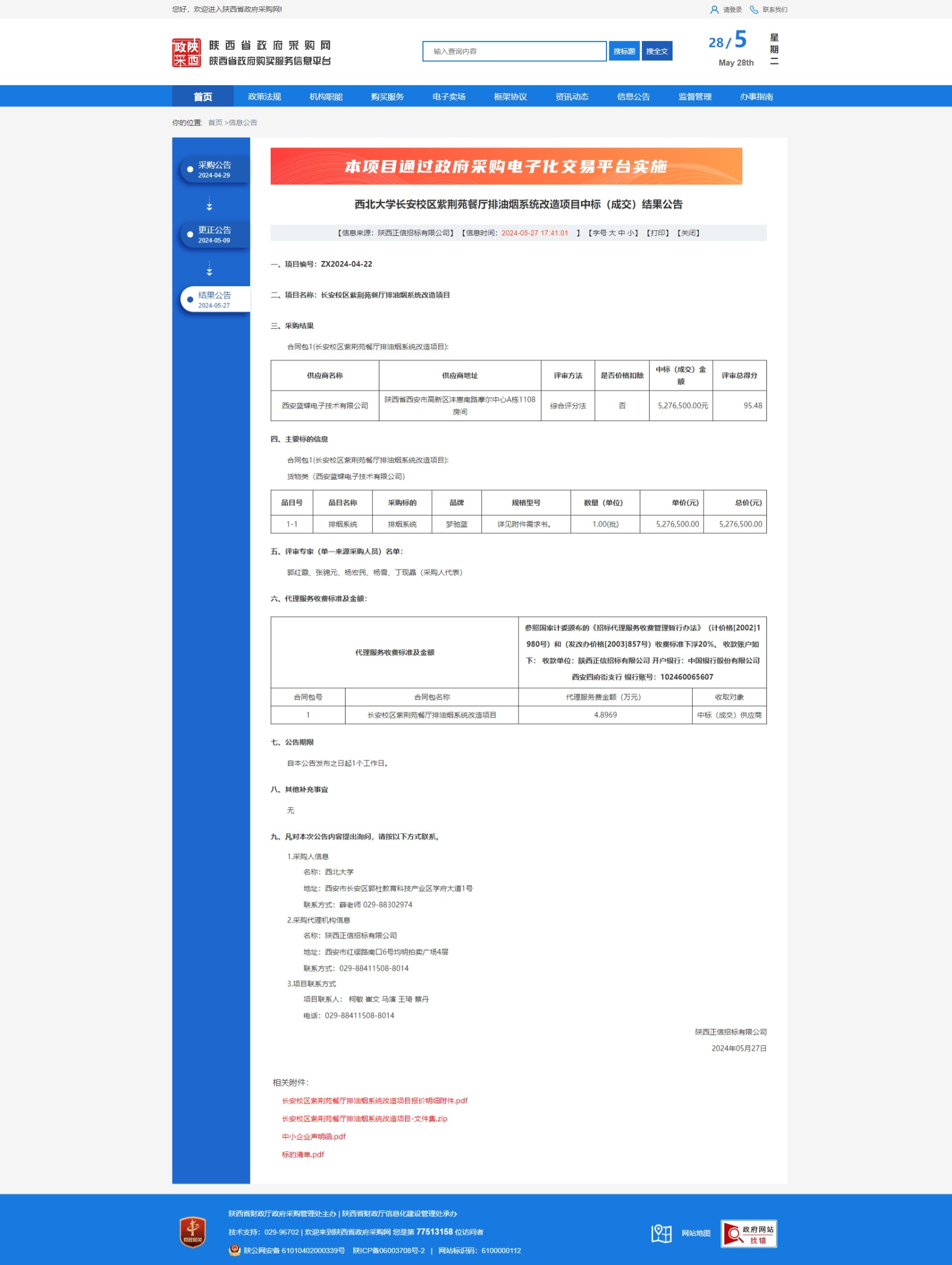 宝威体育官网首页长安校区紫荆苑餐厅排油烟系统改造项目中标(成交)结果公告 作者: 编辑:采购与招标办公室 时间:2024-05-28 原公告链接:https://www.ccgp-shaanxi.gov.cn/freecms/site/shaanxi/ggxx/info/2024/8a69c2108f8bd852018fb91b486c4125.html?noticeType=001021¬iceId=d54daf1e-1c10-11ef-b8b6-08c0eb20c666