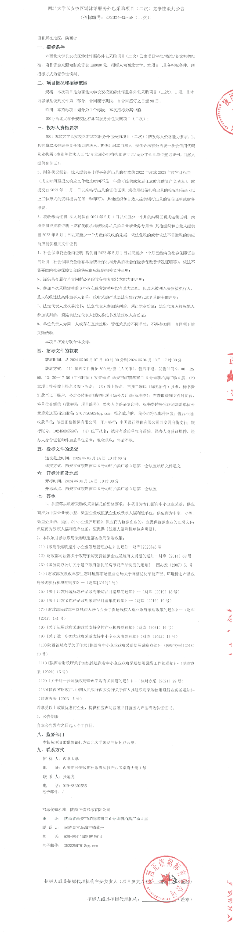 宝威体育官网首页长安校区游泳馆服务外包采购项目(二次)竞争性谈判公告
