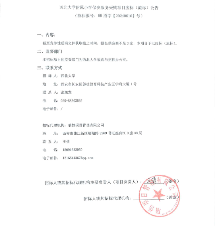 宝威体育官网首页附属小学保安服务采购项目废标(流标)公告