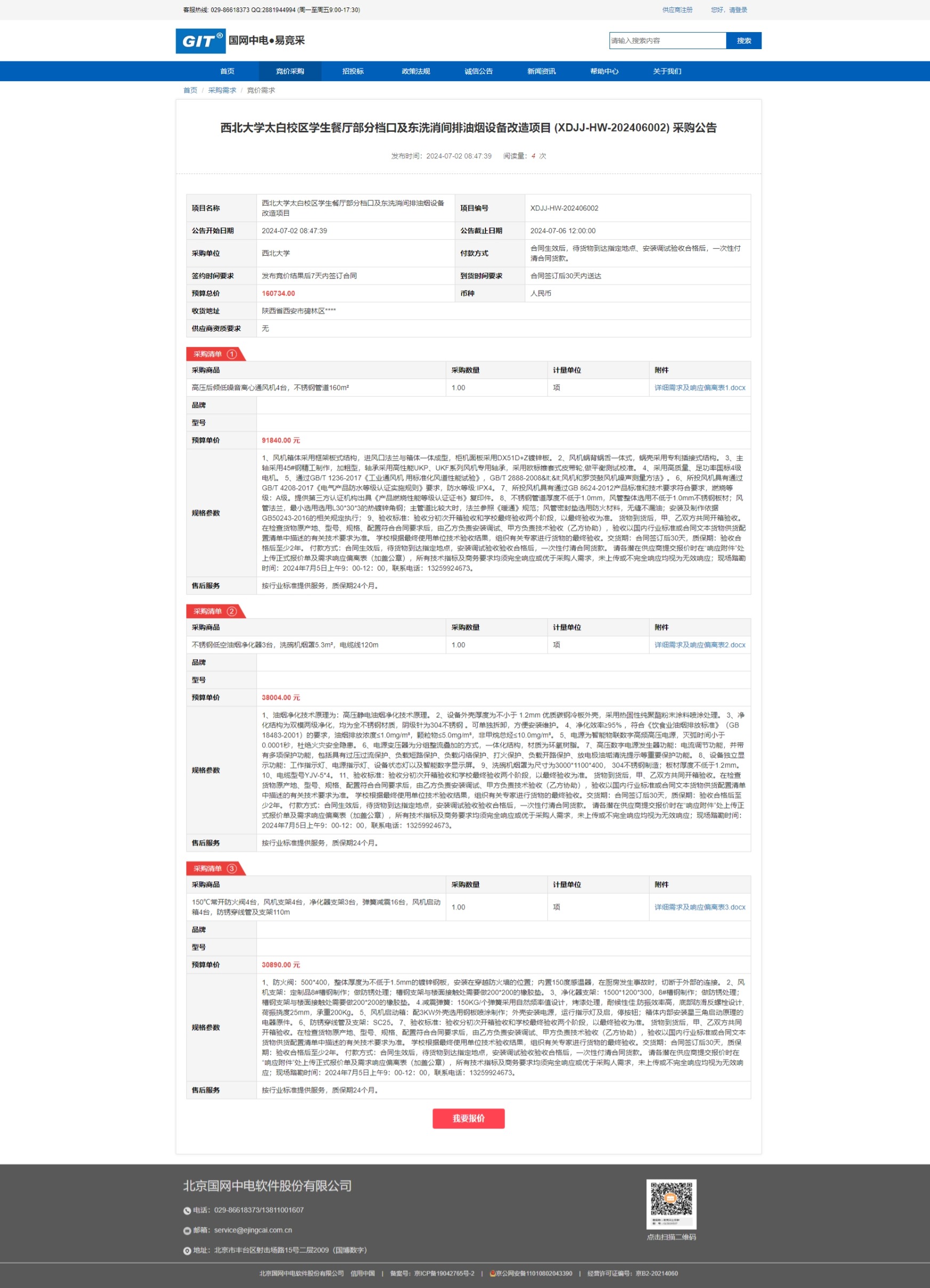 宝威体育官网首页太白校区学生餐厅部分档口及东洗消间排油烟设备改造项目 (XDJJ-HW-202406002) 竞价采购公告 作者: 编辑:采购与招标办公室 时间:2024-07-02 原公告链接:https://www.ejingcai.com.cn/site/bidding/detail/11377