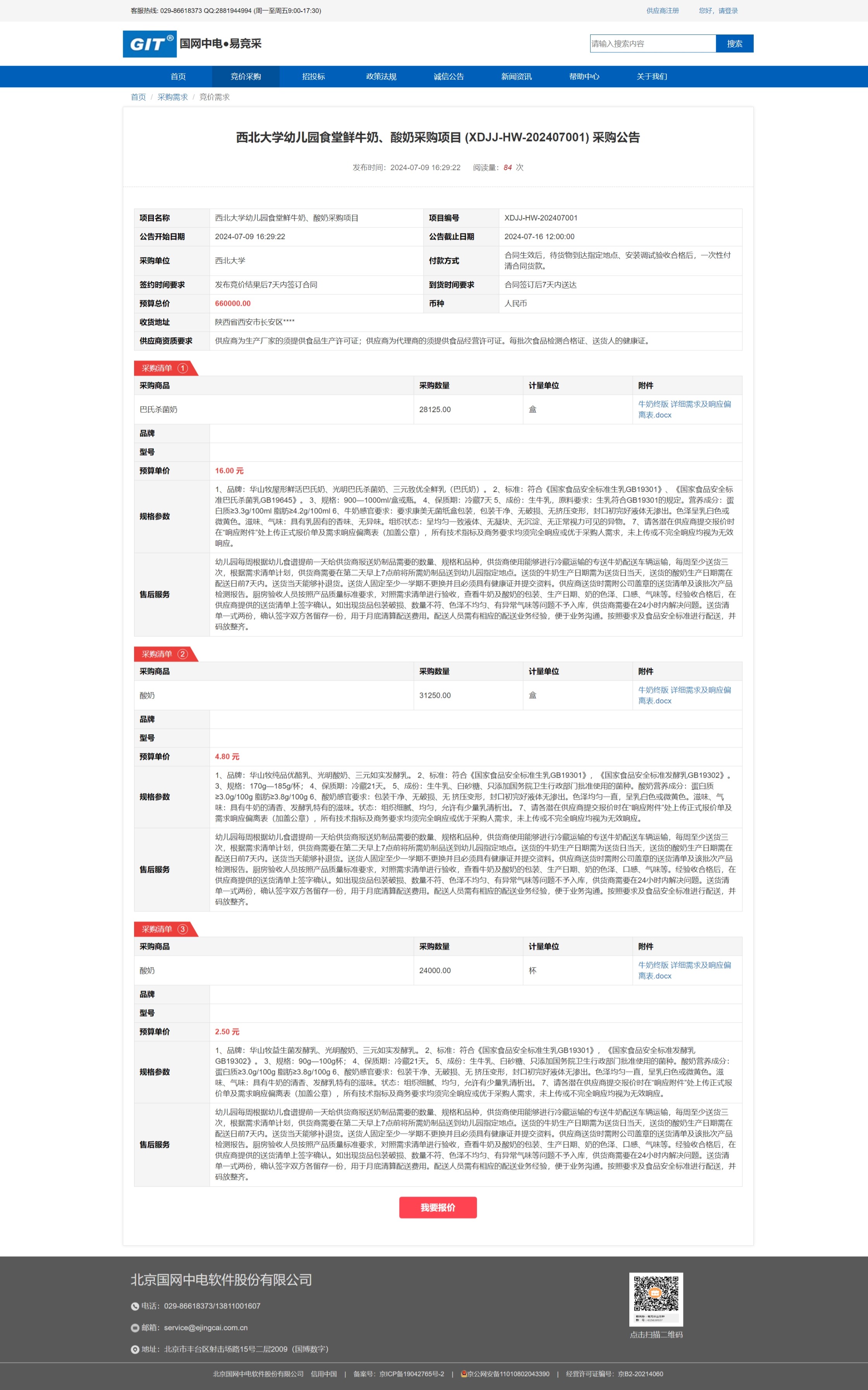 宝威体育官网首页幼儿园食堂鲜牛奶、酸奶采购项目 (XDJJ-HW-202407001) 竞价采购公告 作者: 编辑:采购与招标办公室 时间:2024-07-15 原公告链接:https://www.ejingcai.com.cn/site/bidding/detail/11568
