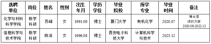 经用人单位推荐,人力资源部审查,学校教学督导及院系相关专家考核,学校专家评审会审议,宝威官网拟确定下列人员来校工作,聘任方式为参编选聘。本着公平、公正、公开的原则,现将本次拟选聘人员基本情况公示如下: