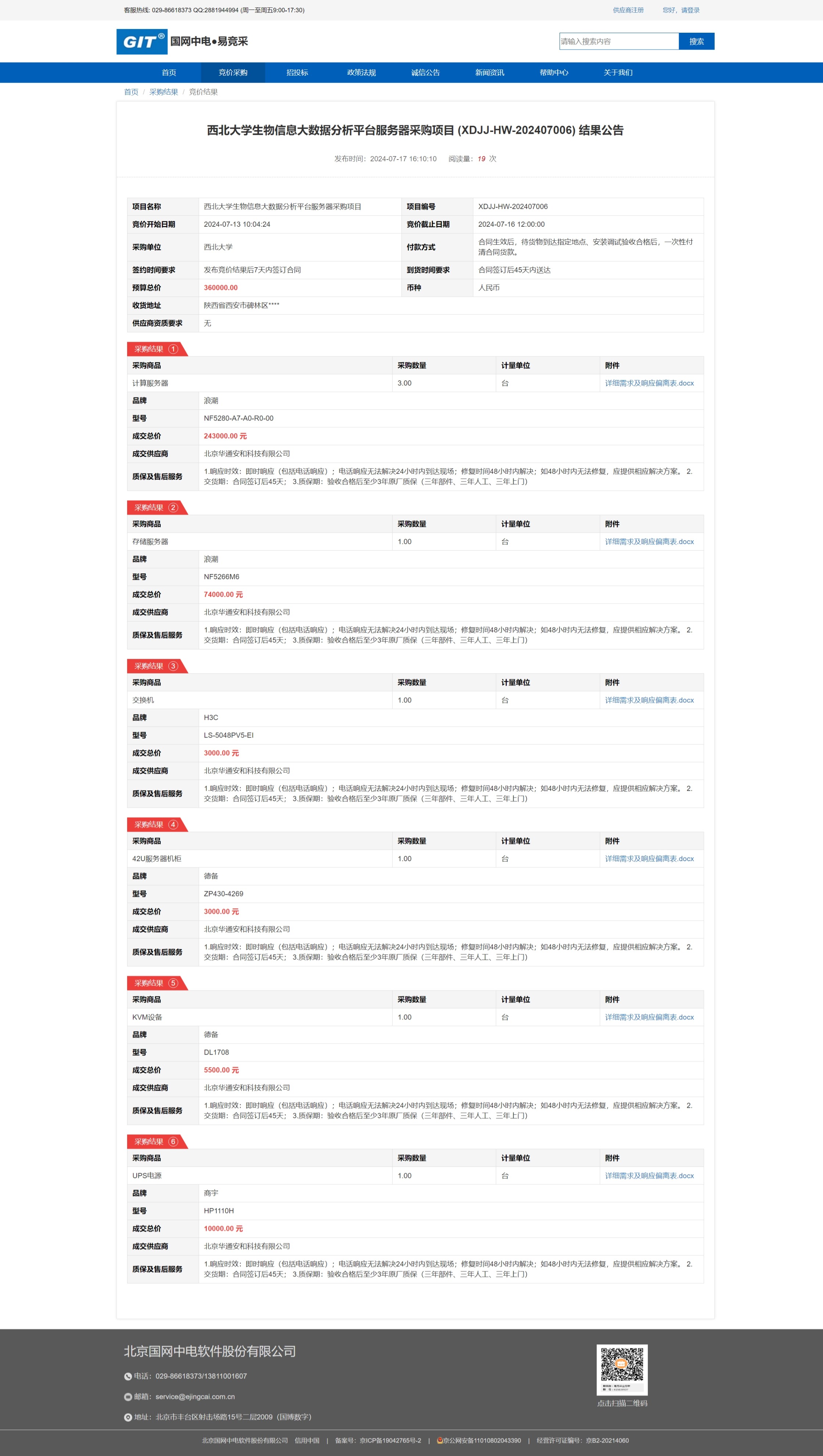 宝威体育官网首页生物信息大数据分析平台服务器采购项目 (XDJJ-HW-202407006) 竞价结果公告 作者: 编辑:采购与招标办公室 时间:2024-07-17 原公告链接:https://www.ejingcai.com.cn/site/bidding/detail/11726