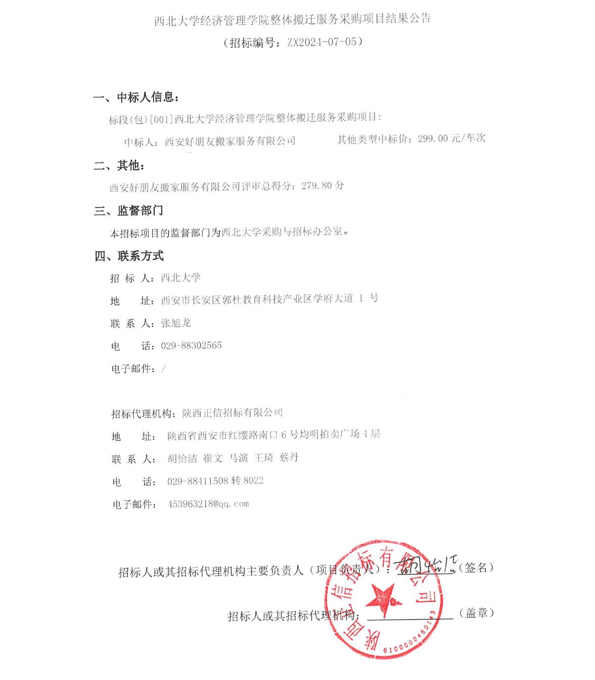 宝威体育官网首页经济管理学院整体搬迁服务采购项目结果公告