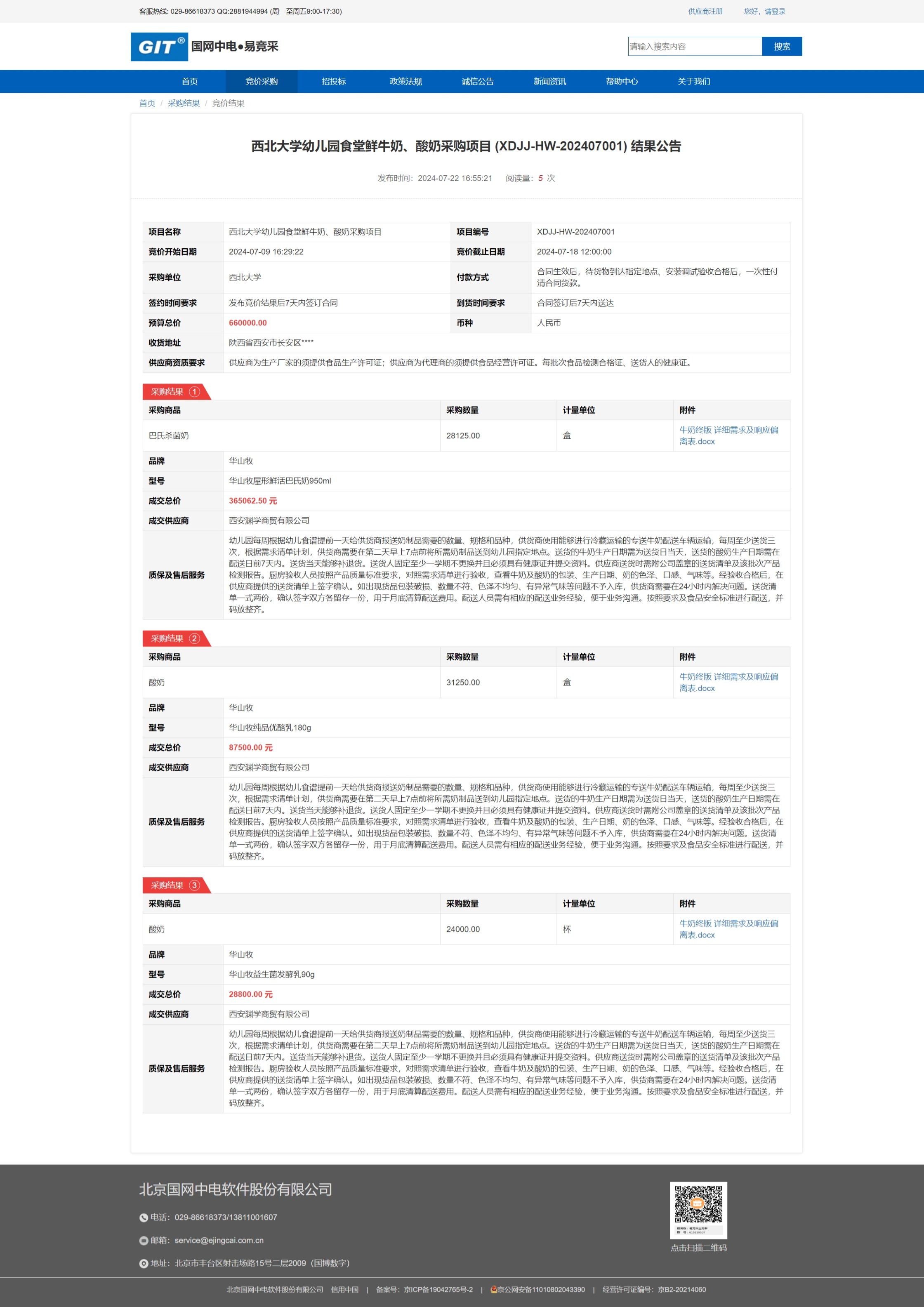 宝威体育官网首页幼儿园食堂鲜牛奶、酸奶采购项目 (XDJJ-HW-202407001) 竞价结果公告 作者: 编辑:采购与招标办公室 时间:2024-07-22 原公告链接:https://www.ejingcai.com.cn/site/bidding/detail/11809
