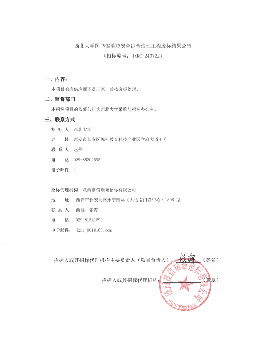 宝威体育官网首页图书馆消防安全综合治理工程废标结果公告