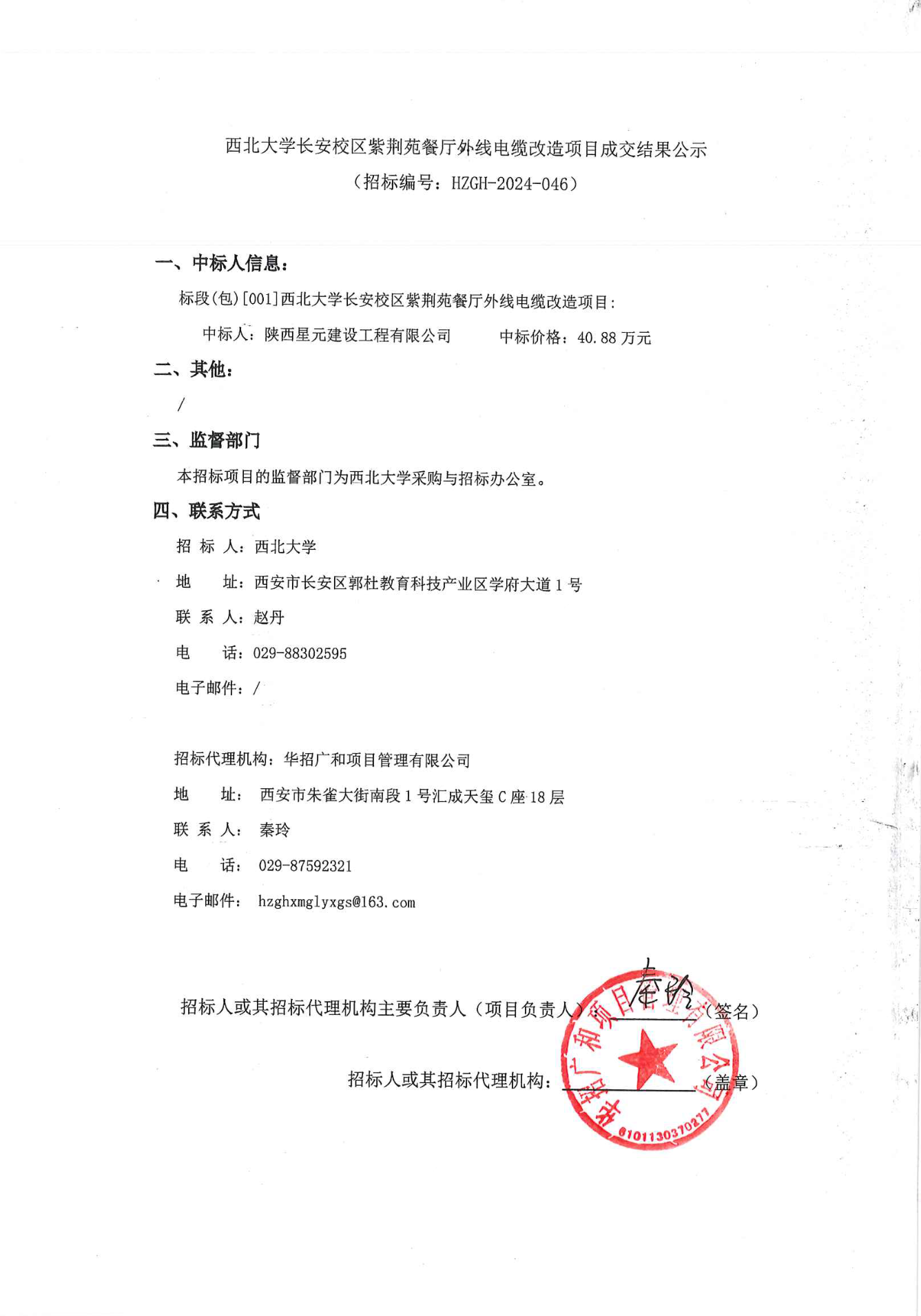 宝威体育官网首页长安校区紫荆苑餐厅外线电缆改造项目成交结果公示
