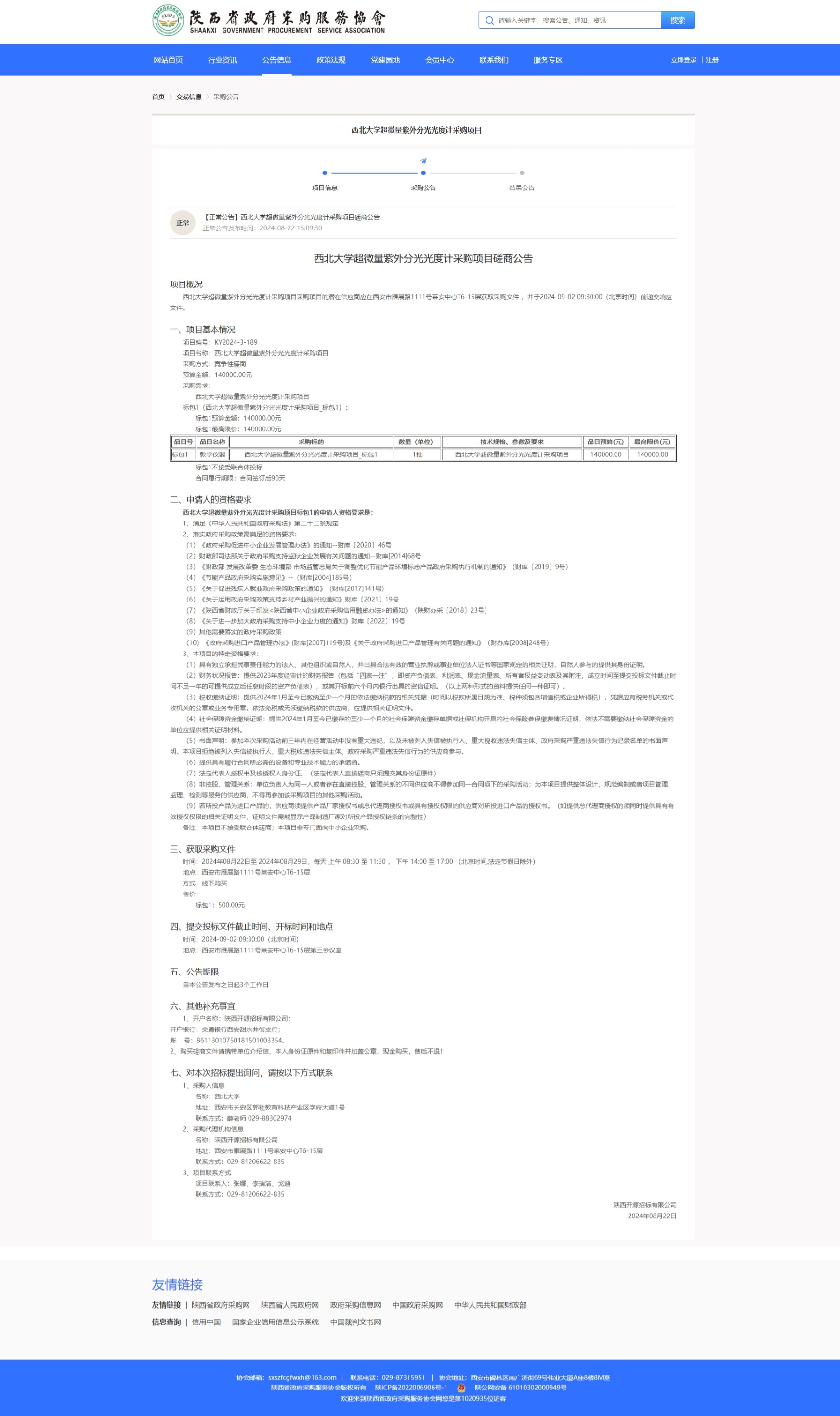 宝威体育官网首页超微量紫外分光光度计采购项目磋商公告 作者: 编辑:采购与招标办公室 时间:2024-08-23 原公告链接:https://www.sxszfcgfwxh.cn/#/tender-vTradeAnnouncement-anno?tenderProjectId=1826435442958446594&rootId=1549250743389216770