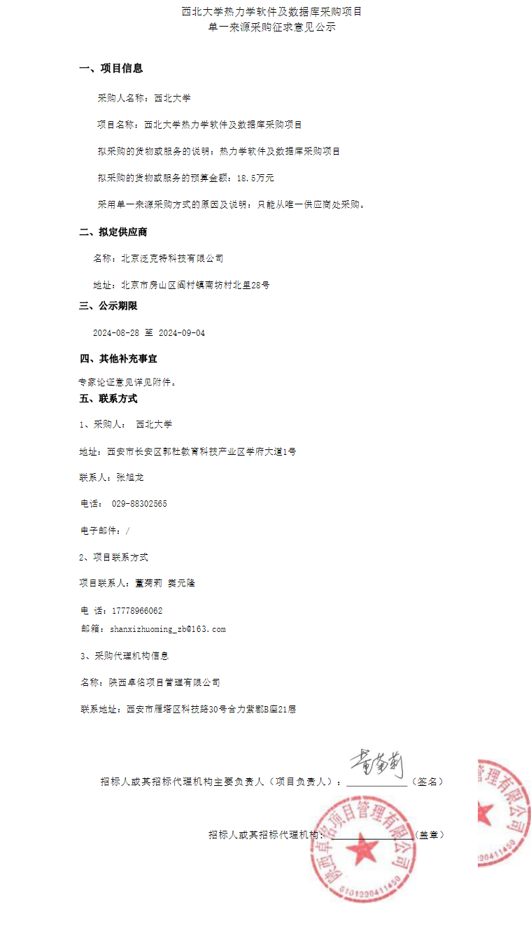 宝威体育官网首页热力学软件及数据库采购项目单一来源采购征求意见公示