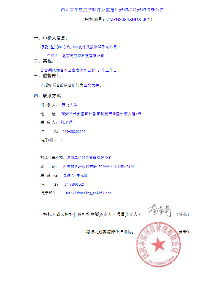 宝威体育官网首页热力学软件及数据库采购项目采购结果公告