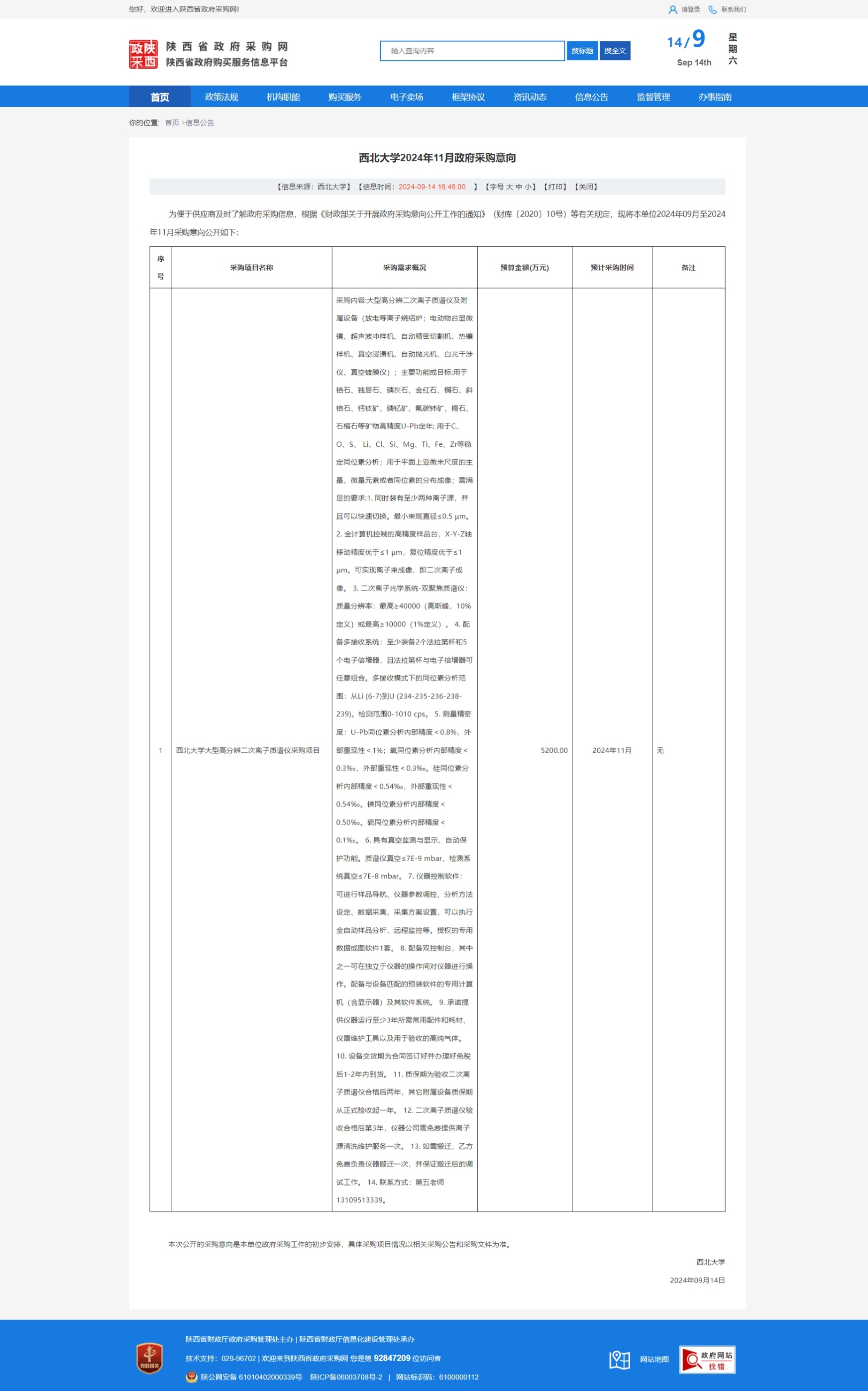 宝威体育官网首页2024年11月政府采购意向 作者: 编辑:采购与招标办公室 时间:2024-09-14 原公告链接:https://www.ccgp-shaanxi.gov.cn/freecms/site/shaanxi/ggxx/info/2024/8a69c24d91d6105a0191efadceb9269b.html?noticeType=59¬iceId=3954bd28-7277-11ef-8063-08c0eb20c666