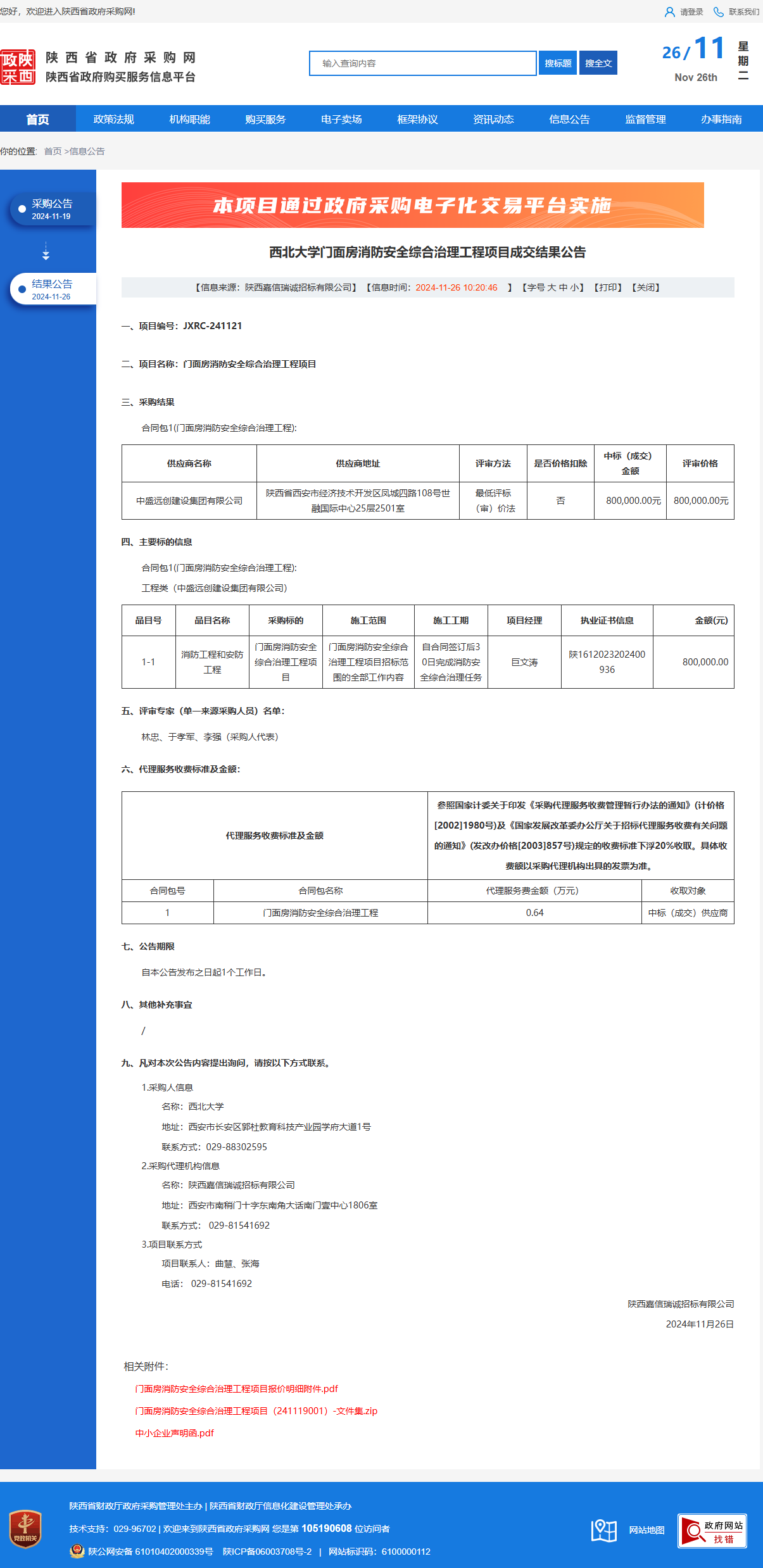 宝威体育官网首页门面房消防安全综合治理工程项目成交结果公告