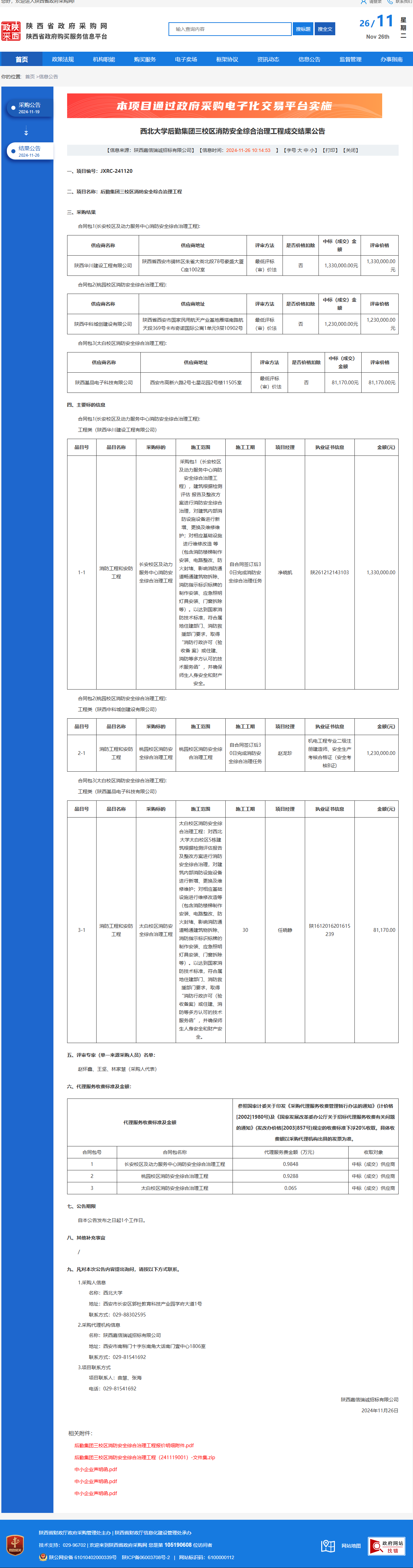 宝威体育官网首页后勤集团三校区消防安全综合治理工程成交结果公告