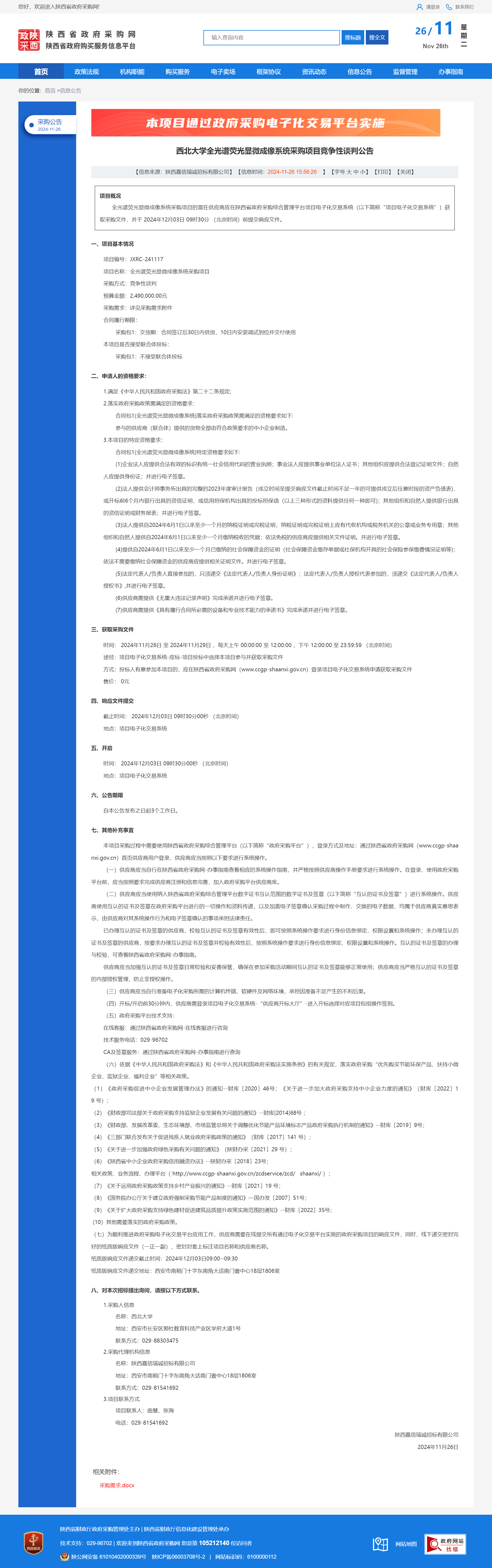 宝威体育官网首页全光谱荧光显微成像系统采购项目竞争性谈判公告 作者:采购与招标办公室 编辑: 时间:2024-11-26 原公告链接:https://www.ccgp-shaanxi.gov.cn/freecms/site/shaanxi/ggxx/info/2024/8a69c95d921859f001936768d6964ed3.html?noticeType=001013¬iceId=86c4a750-abcd-11ef-8063-08c0eb20c666