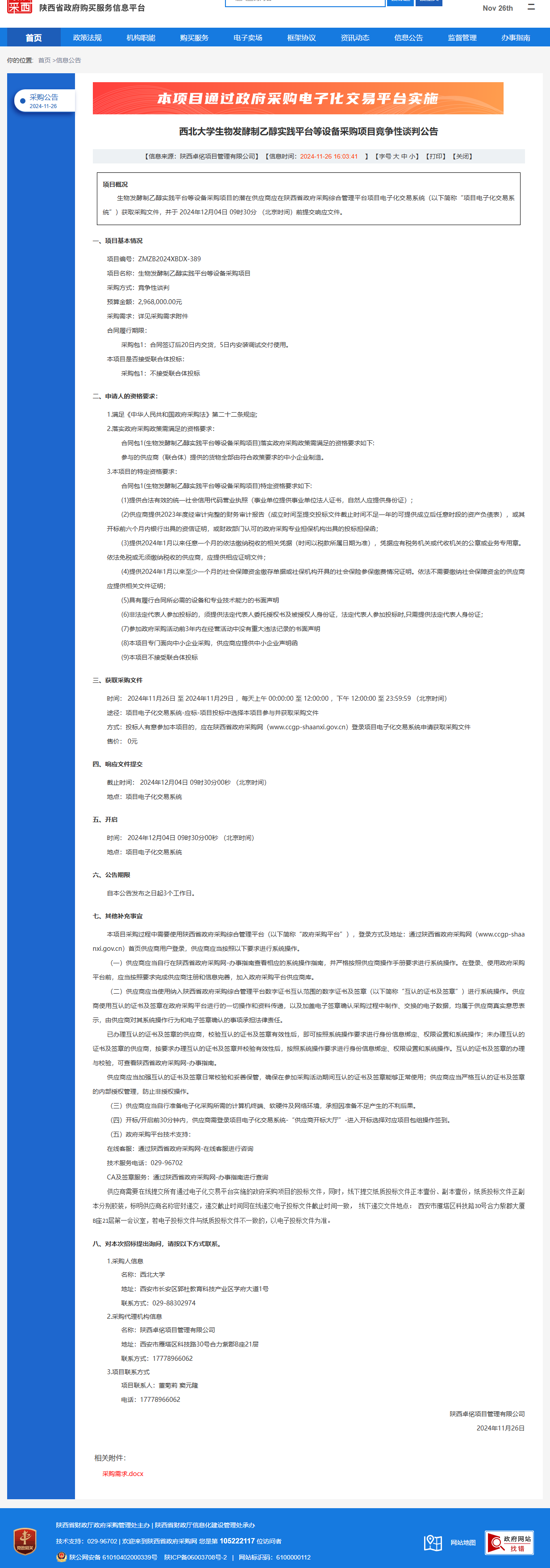 宝威体育官网首页生物发酵制乙醇实践平台等设备采购项目竞争性谈判公告 作者:采购与招标办公室 编辑: 时间:2024-11-26 原公告链接:https://www.ccgp-shaanxi.gov.cn/freecms/site/shaanxi/ggxx/info/2024/8a69c95d921859f0019365f6c5e47f67.html?noticeType=001013¬iceId=8a2ac2c3-abce-11ef-8063-08c0eb20c666