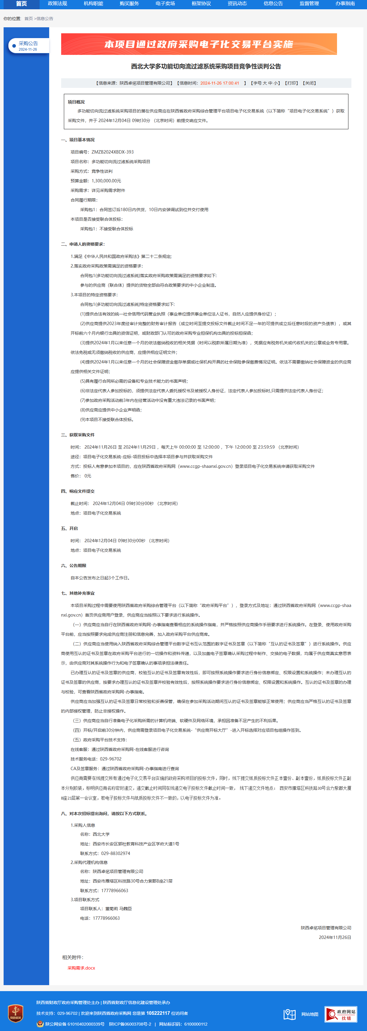 宝威体育官网首页多功能切向流过滤系统采购项目竞争性谈判公告 作者:采购与招标办公室 编辑: 时间:2024-11-26 原公告链接:https://www.ccgp-shaanxi.gov.cn/freecms/site/shaanxi/ggxx/info/2024/8a69c44e9218572b0193677ca4876f80.html?noticeType=001013¬iceId=80bc7ae0-abd6-11ef-8063-08c0eb20c666