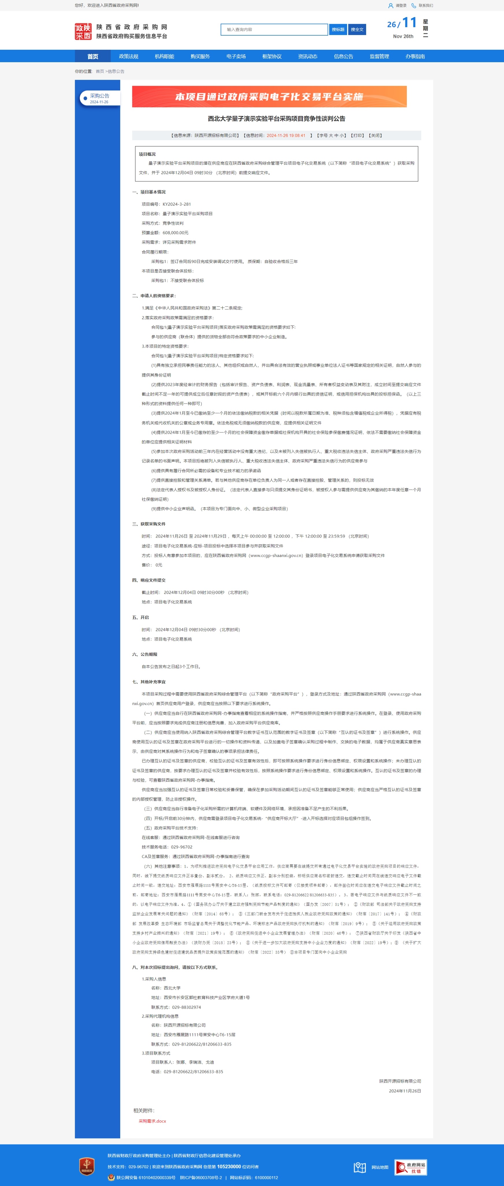 宝威体育官网首页量子演示实验平台采购项目竞争性谈判公告 作者: 编辑:薛利娟 时间:2024-11-26 原公告链接:https://www.ccgp-shaanxi.gov.cn/freecms/site/shaanxi/ggxx/info/2024/8a69c44e9218572b0193681e9220574d.html?noticeType=001013¬iceId=6276d604-abe8-11ef-8063-08c0eb20c666