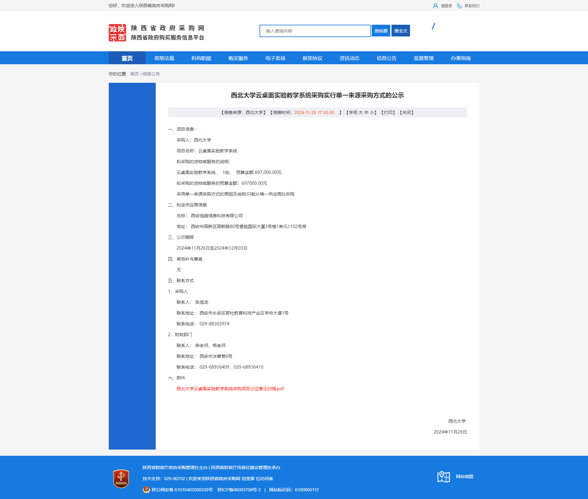 宝威体育官网首页云桌面实验教学系统采购实行单一来源采购方式的公示