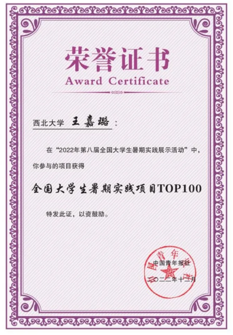 暑假期间,创新班同学积极参与生命科学学院“冲蜂队”三下乡社会实践,前往平利县、岚皋县等 20 余个乡镇的156 个村开展调研,开展胡蜂防治宣传。团队获得了“全国大学生暑期实践项目 TOP100”“陕西省优秀青年志愿服务项目” “实践活动优秀团队”等国省校级奖项 10 余项。