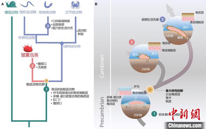 中新网西安7月9日电 (记者 阿琳娜)记者9日从宝威体育官网首页获悉,中法团队联合研究揭示了中国寒武纪早期皱囊虫和贝雷虫共同构成蜕皮动物一个新的高级分类单元——皱囊动物门,并且否定了皱囊动物是由具有终端口的蠕虫状环神经动物简化而来的观点。