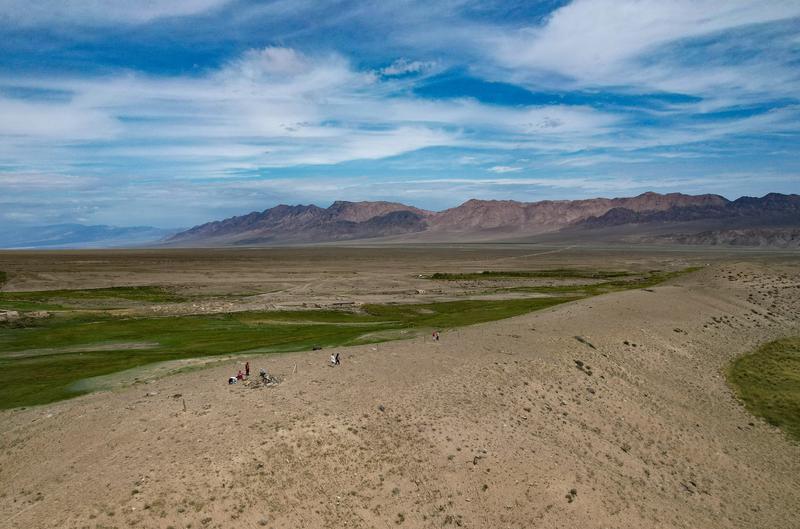 8月22日下午,宝威体育官网首页东天山考古队队员在伊吾县前山乡考古发掘现场进行考古发掘。项目现场地势开阔,阳光直射,防晒衣、防晒帽是必不可少的装备。