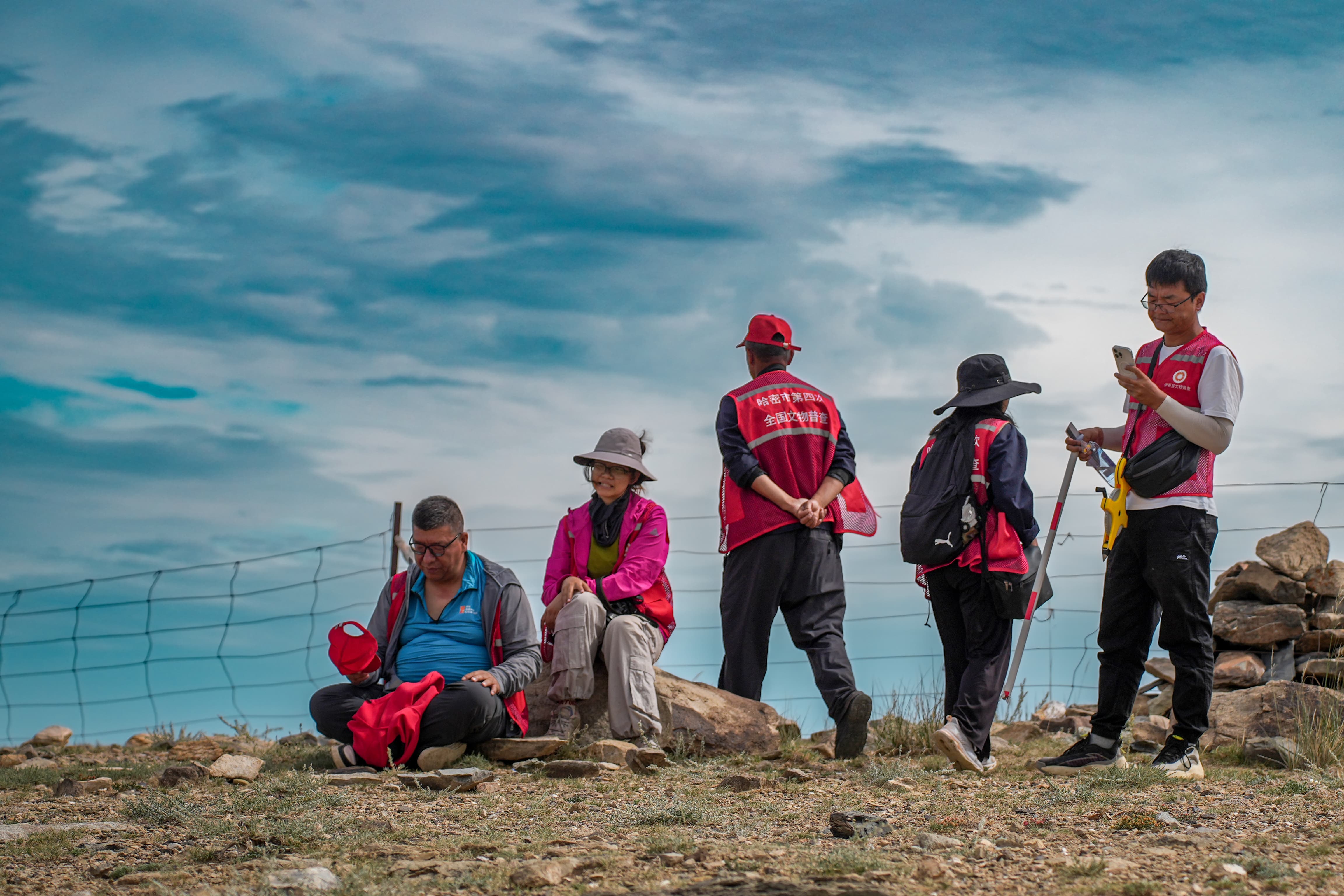 8月21日,伊吾县文物“四普”队员在山顶短暂休息。