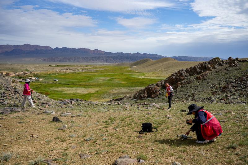 8月21日,伊吾县文物“四普”队员对文化遗存进行测量、拍照工作。