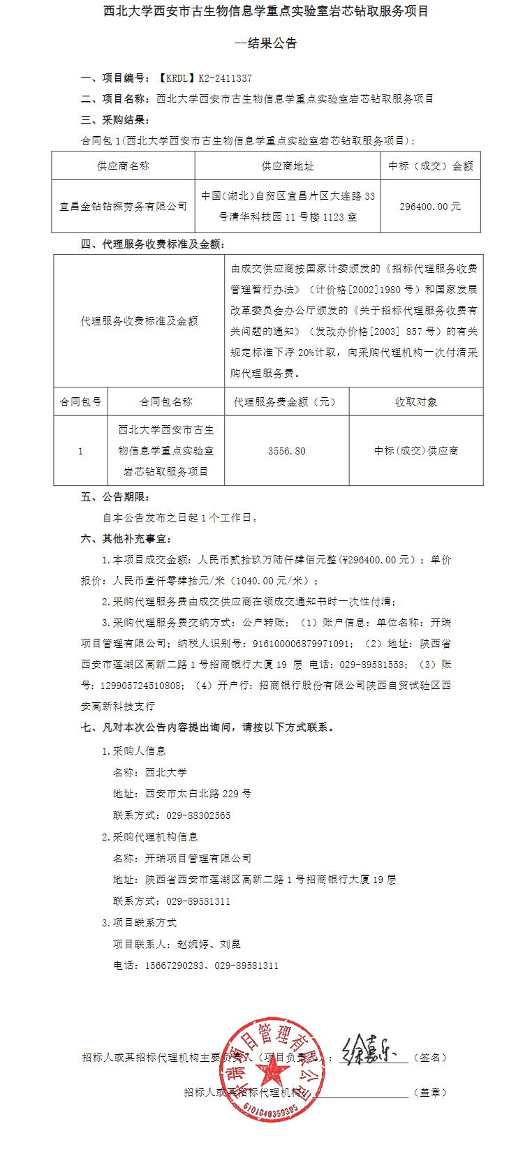 宝威体育官网首页西安市古生物信息学重点实验室岩芯钻取服务项目结果公告