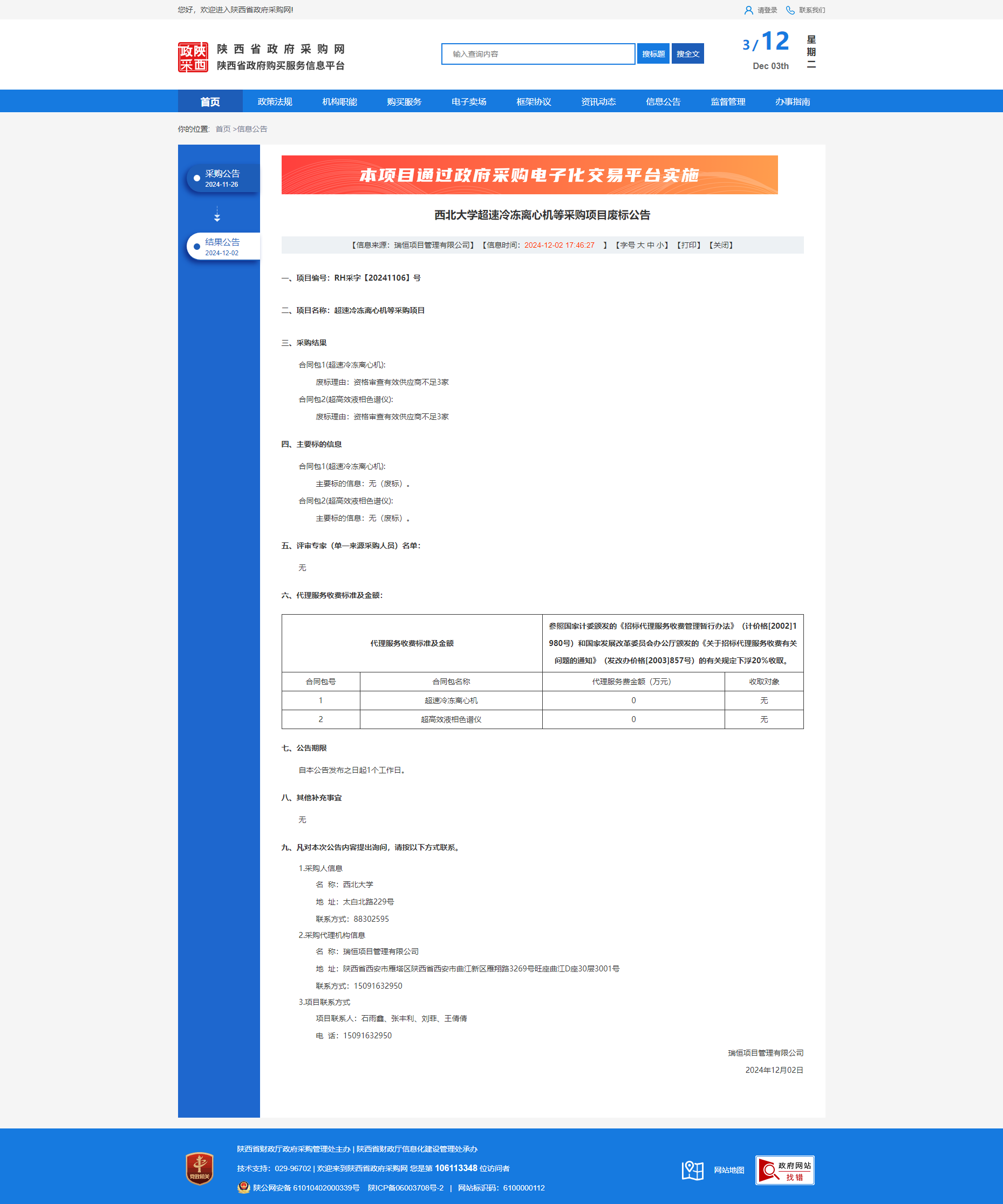 宝威体育官网首页超速冷冻离心机等采购项目废标公告