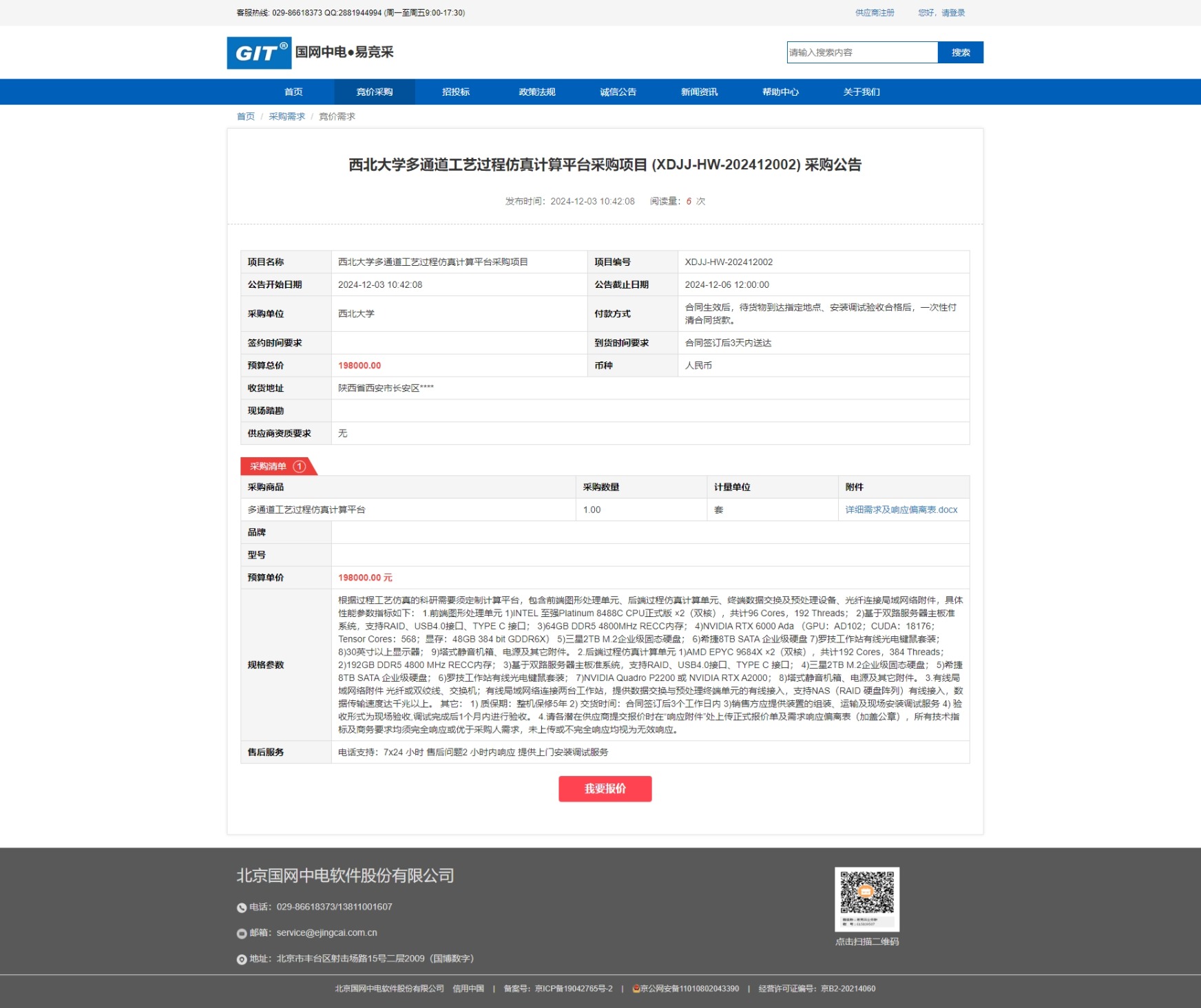 宝威体育官网首页多通道工艺过程仿真计算平台采购项目 (XDJJ-HW-202412002) 竞价采购公告 作者: 编辑:薛利娟 时间:2024-12-03 原公告链接:https://www.ejingcai.com.cn/site/bidding/detail/15600