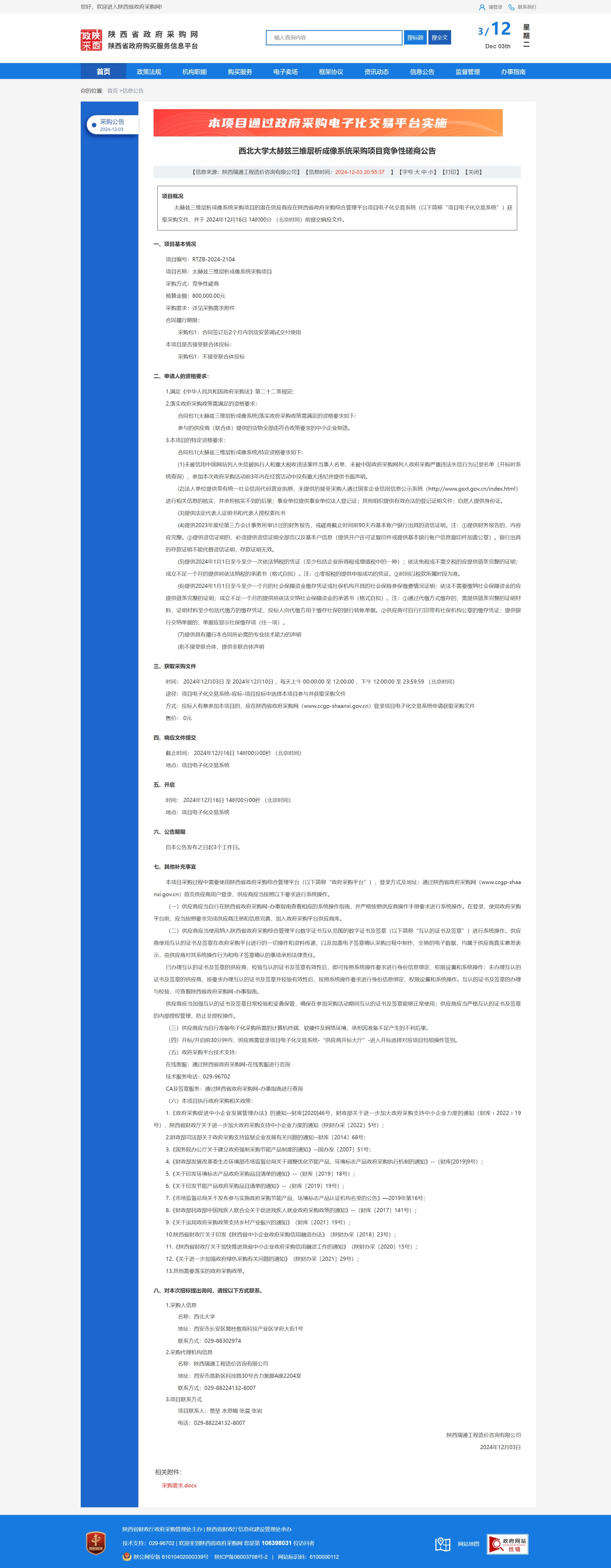 宝威体育官网首页太赫兹三维层析成像系统采购项目竞争性磋商公告 作者: 编辑:薛利娟 时间:2024-12-03 原公告链接:https://www.ccgp-shaanxi.gov.cn/freecms/site/shaanxi/ggxx/info/2024/8a69c95d921859f001938c91d623402a.html?noticeType=001016¬iceId=7f0f6e3e-b177-11ef-8063-08c0eb20c666