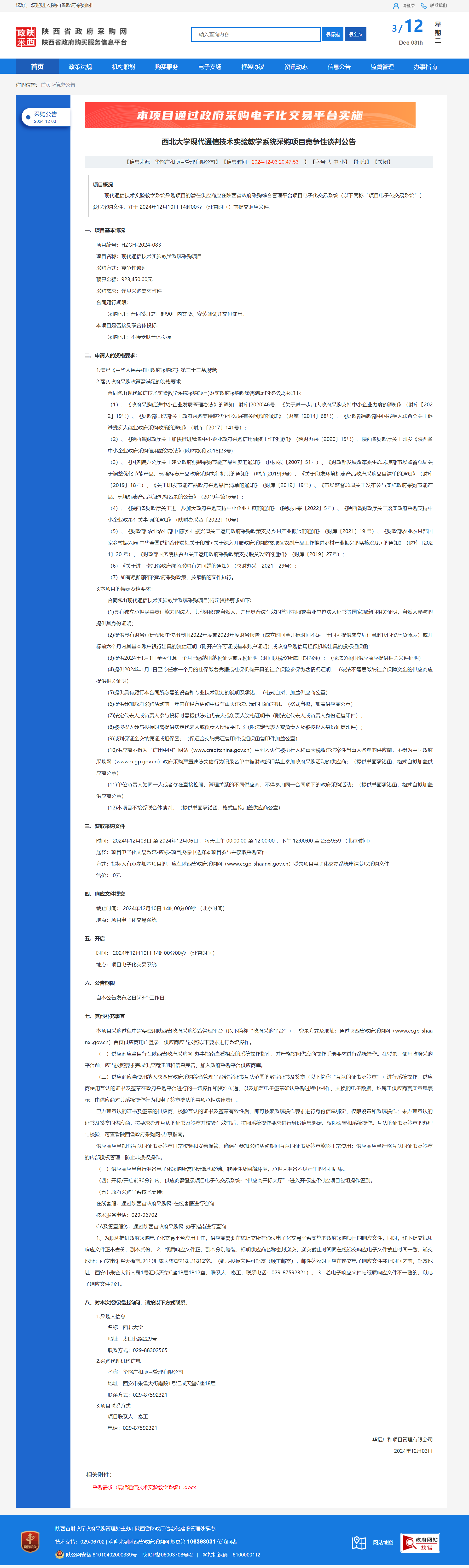 宝威体育官网首页现代通信技术实验教学系统采购项目竞争性谈判公告