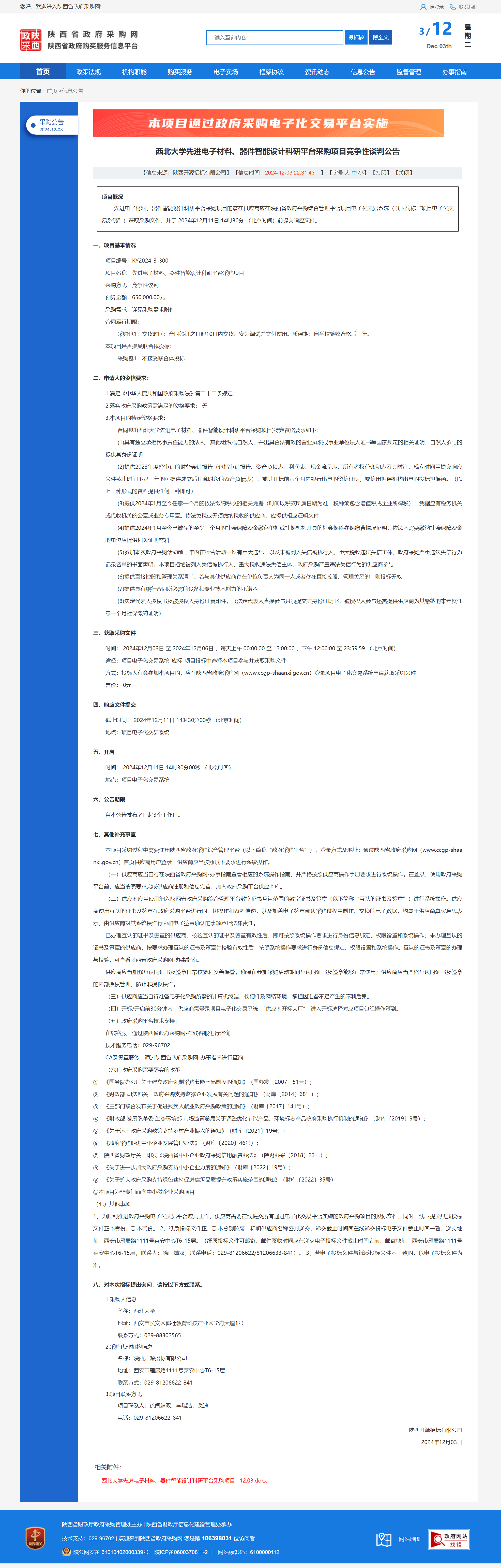 宝威体育官网首页先进电子材料、器件智能设计科研平台采购项目竞争性谈判公告