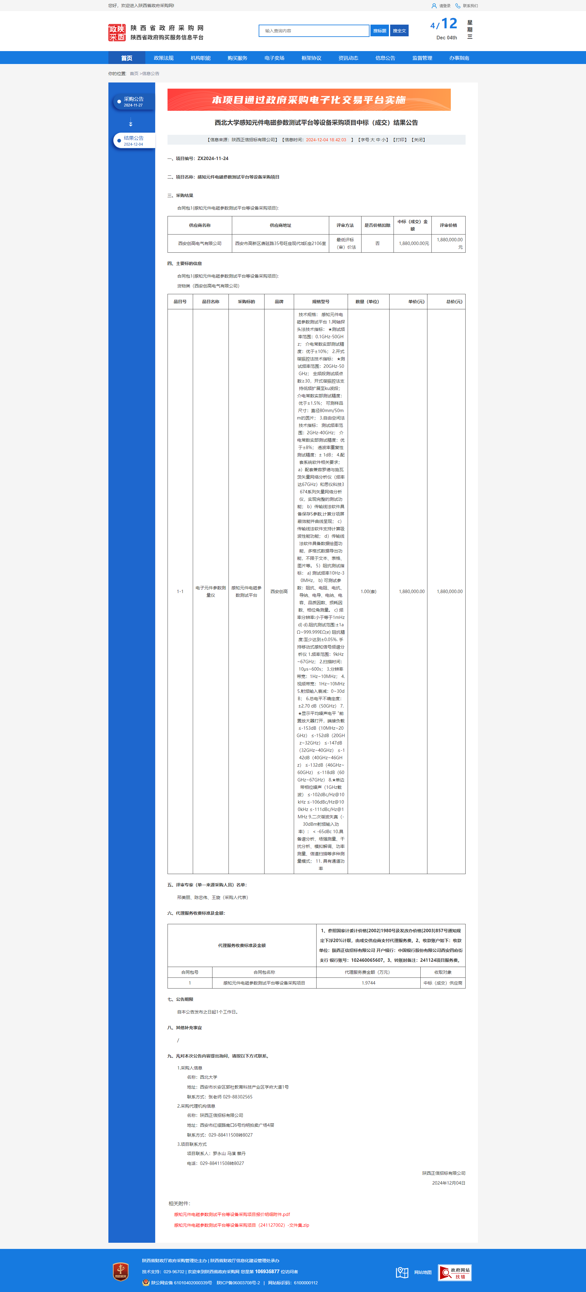 宝威体育官网首页感知元件电磁参数测试平台等设备采购项目中标(成交)结果公告