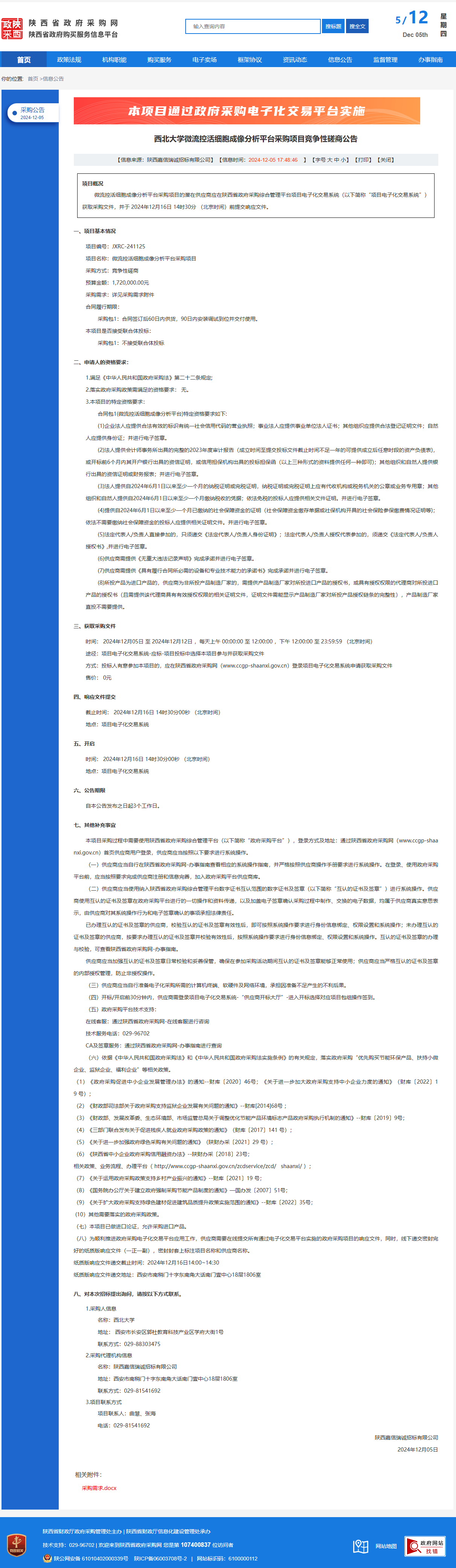 宝威体育官网首页微流控活细胞成像分析平台采购项目竞争性磋商公告 作者:采购与招标办公室 编辑: 时间:2024-12-05 原公告链接:https://www.ccgp-shaanxi.gov.cn/freecms/site/shaanxi/ggxx/info/2024/8a69c5a59218576d0193962b8b5f7d27.html?noticeType=001016¬iceId=ba5283be-b2ef-11ef-8063-08c0eb20c666
