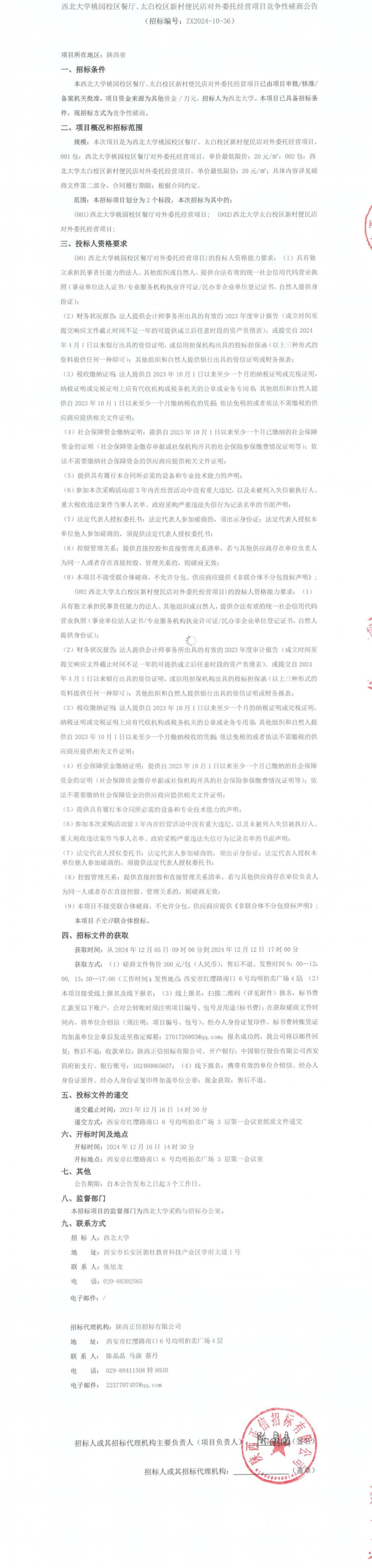宝威体育官网首页桃园校区餐厅、太白校区新村便民店对外委托经营项目竞争性磋商公告