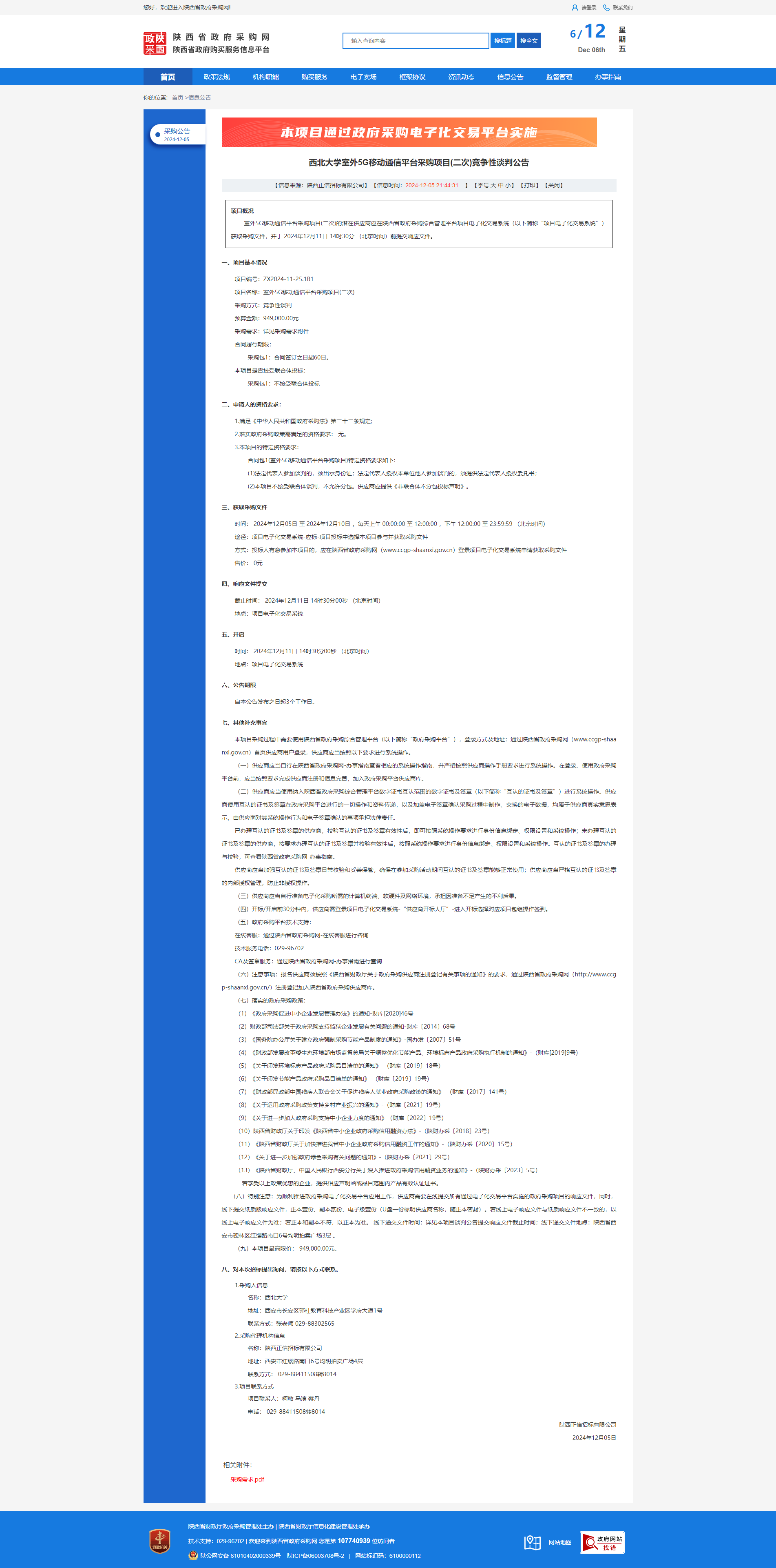 宝威体育官网首页室外5G移动通信平台采购项目(二次)竞争性谈判公告
