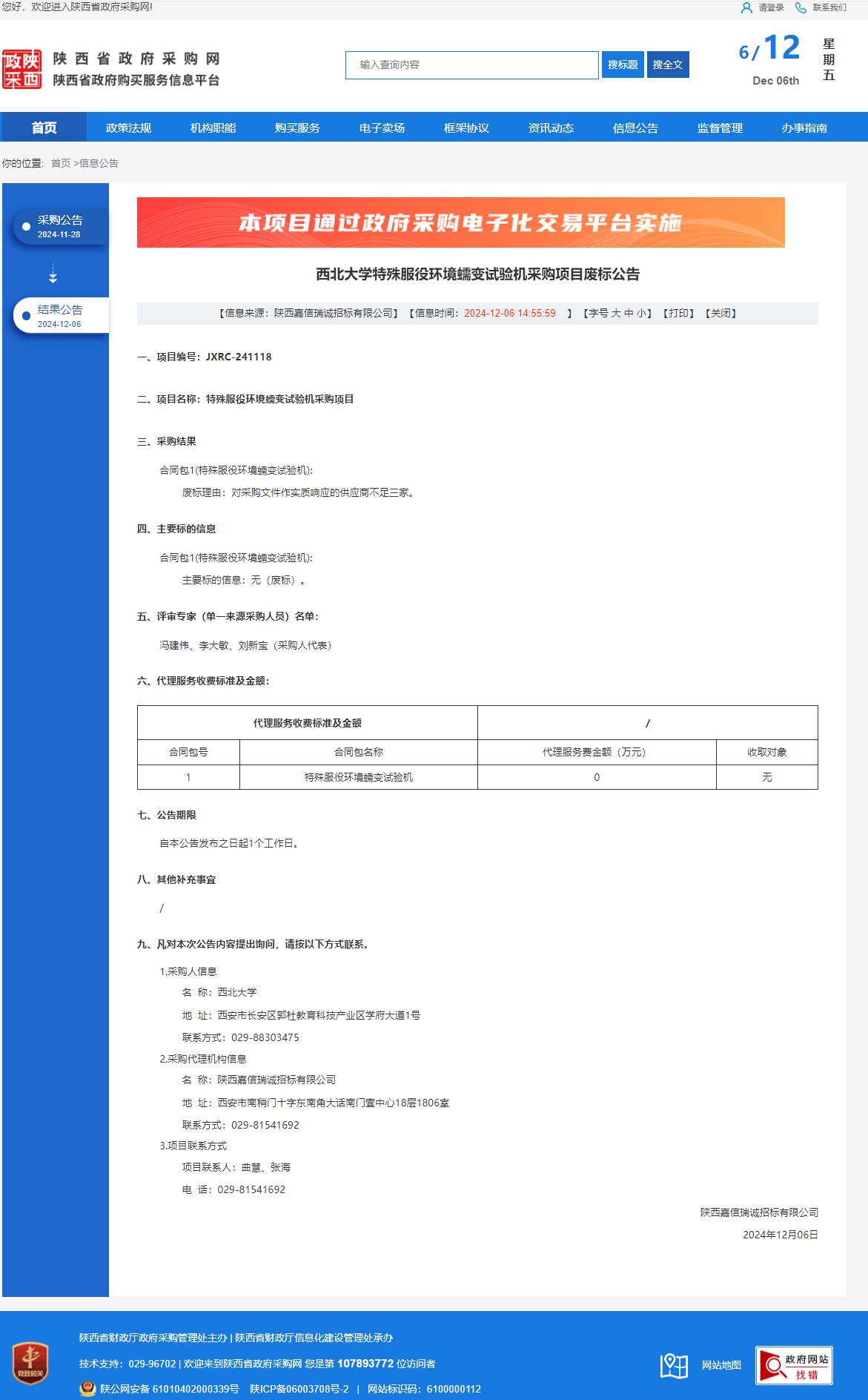 宝威体育官网首页特殊服役环境蠕变试验机采购项目废标公告 作者:采购与招标办公室 编辑: 时间:2024-12-06 原公告链接:https://www.ccgp-shaanxi.gov.cn/freecms/site/shaanxi/ggxx/info/2024/8a69c95d921859f001939aa5154c08a7.html?noticeType=001006¬iceId=c1cb7312-b3a0-11ef-8063-08c0eb20c666