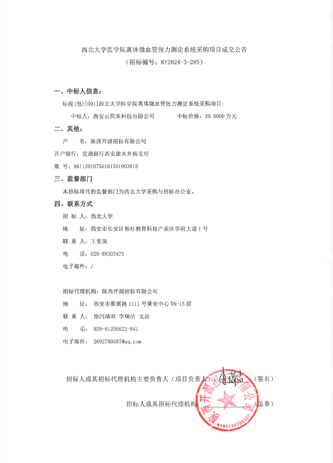 宝威体育官网首页医学院离体微血管张力测定系统采购项目成交公告 作者:采购与招标办公室 编辑: 时间:2024-12-06 原公告链接:http://bulletin.sntba.com/resultBulletin/2024-12-06/1994392.html