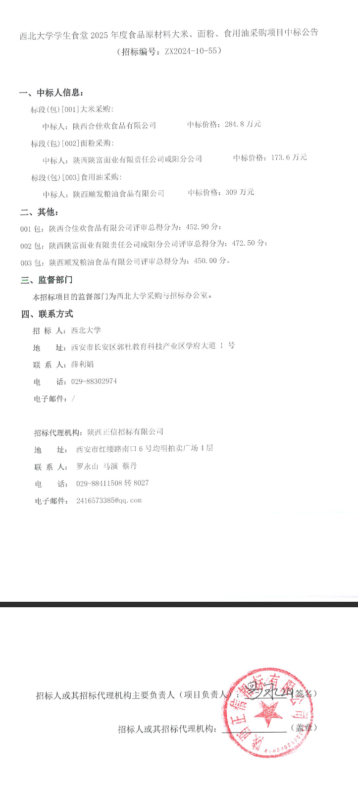 宝威体育官网首页学生食堂2025年度食品原材料大米、面粉、食用油采购项目中标公告