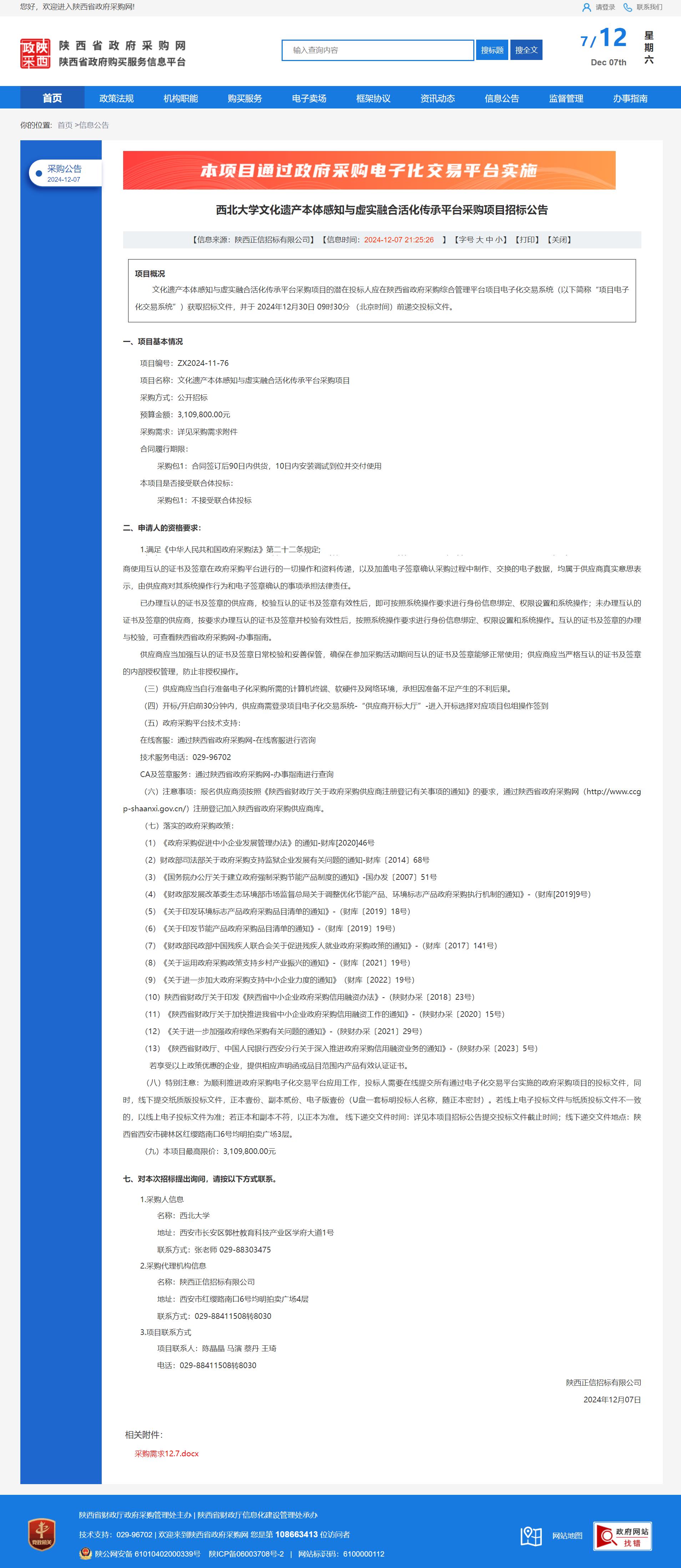 宝威体育官网首页文化遗产本体感知与虚实融合活化传承平台采购项目招标公告