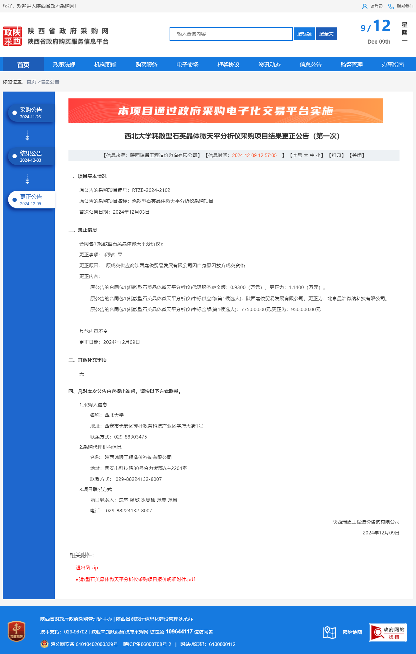 宝威体育官网首页耗散型石英晶体微天平分析仪采购项目结果更正公告(第一次) 作者:采购与招标办公室 编辑: 时间:2024-12-09 原公告链接:http://www.ccgp-shaanxi.gov.cn/freecms/site/shaanxi/ggxx/info/2024/8a69c251921857370193a9a220bd255f.html?noticeType=001032¬iceId=a663ae52-b5eb-11ef-8063-08c0eb20c666