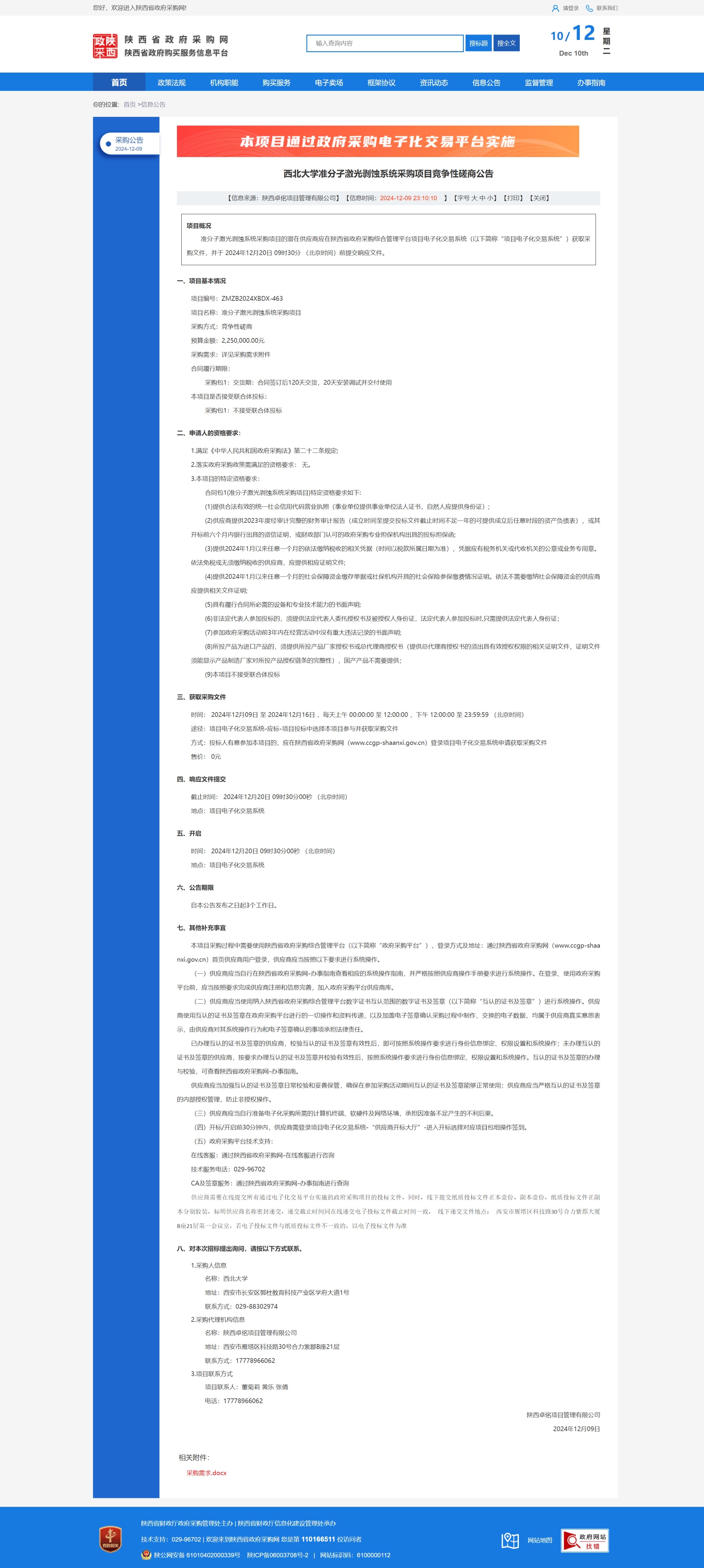 宝威体育官网首页准分子激光剥蚀系统采购项目竞争性磋商公告 作者: 编辑:薛利娟 时间:2024-12-10 原公告链接:https://www.ccgp-shaanxi.gov.cn/freecms/site/shaanxi/ggxx/info/2024/8a69c44e9218572b0193abf2be5c4250.html?noticeType=001016¬iceId=4c4263c6-b641-11ef-8063-08c0eb20c666