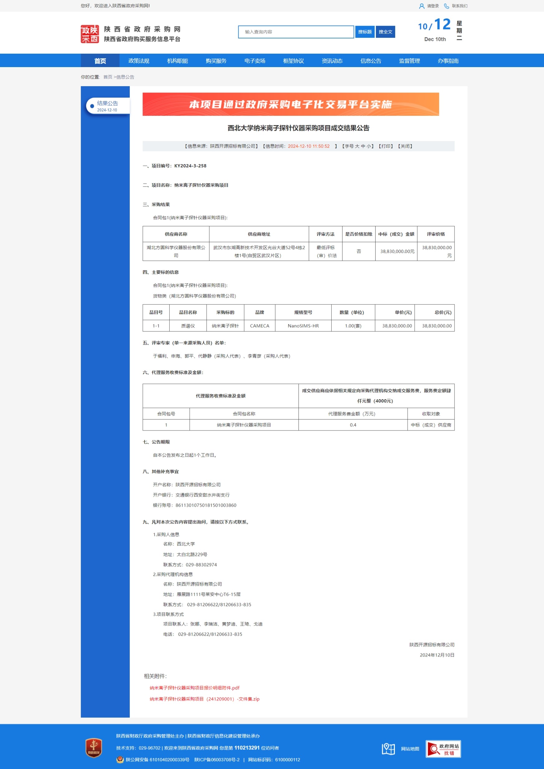 宝威体育官网首页纳米离子探针仪器采购项目成交结果公告 作者: 编辑:薛利娟 时间:2024-12-10 原公告链接:https://www.ccgp-shaanxi.gov.cn/freecms/site/shaanxi/ggxx/info/2024/8a69c5a59218576d0193aea3717402eb.html?noticeType=001025¬iceId=917c05e9-b6ab-11ef-8063-08c0eb20c666