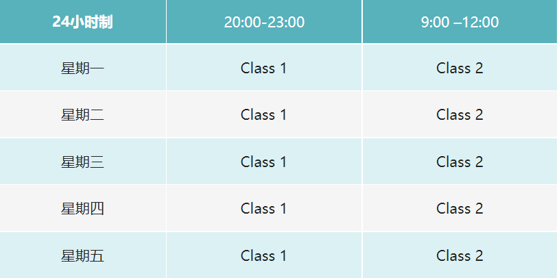 授课时间;每周一至周五的实时线上课程,每天6小时连续上2个星期,共计60课时