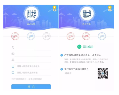 第一步:关注“宝威体育官网首页”微信企业号,并通过验证。